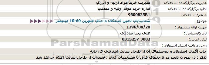 استعلام شناسایی تامین کنندگان داخلی فلورین 60-10 میلیمتر , استعلام, استعلام شناسایی تامین کنندگان داخلی فلورین 60-10 میلیمتر
