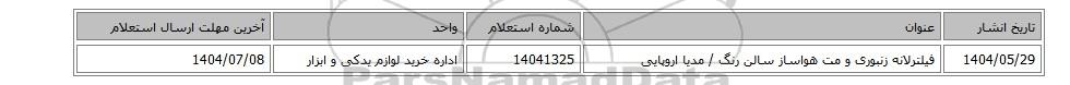 1404/05/29فیلترلانه زنبوری و مت هواساز سالن رنگ / مدیا اروپایی14041325اداره خرید لوازم یدکی و ابزار1404/07/08