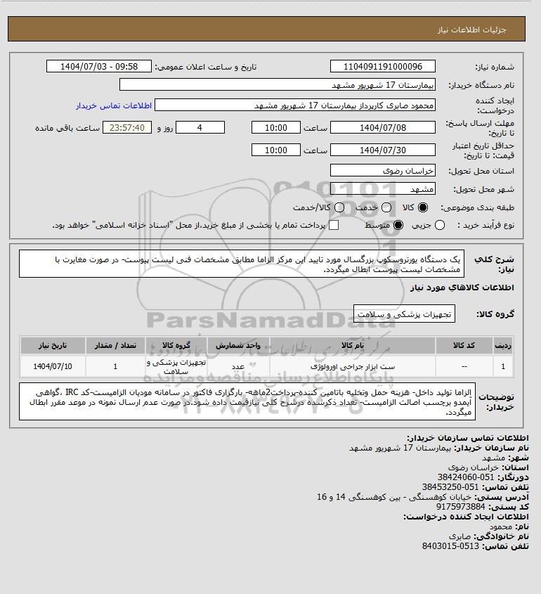 نام دستگاه خریدار:بیمارستان 17 شهریور مشهد