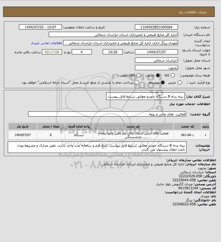 شرح کلی نیاز: بینه بدنه 8 دستگاه خودرو مطابق شرایط فایل پیوست
