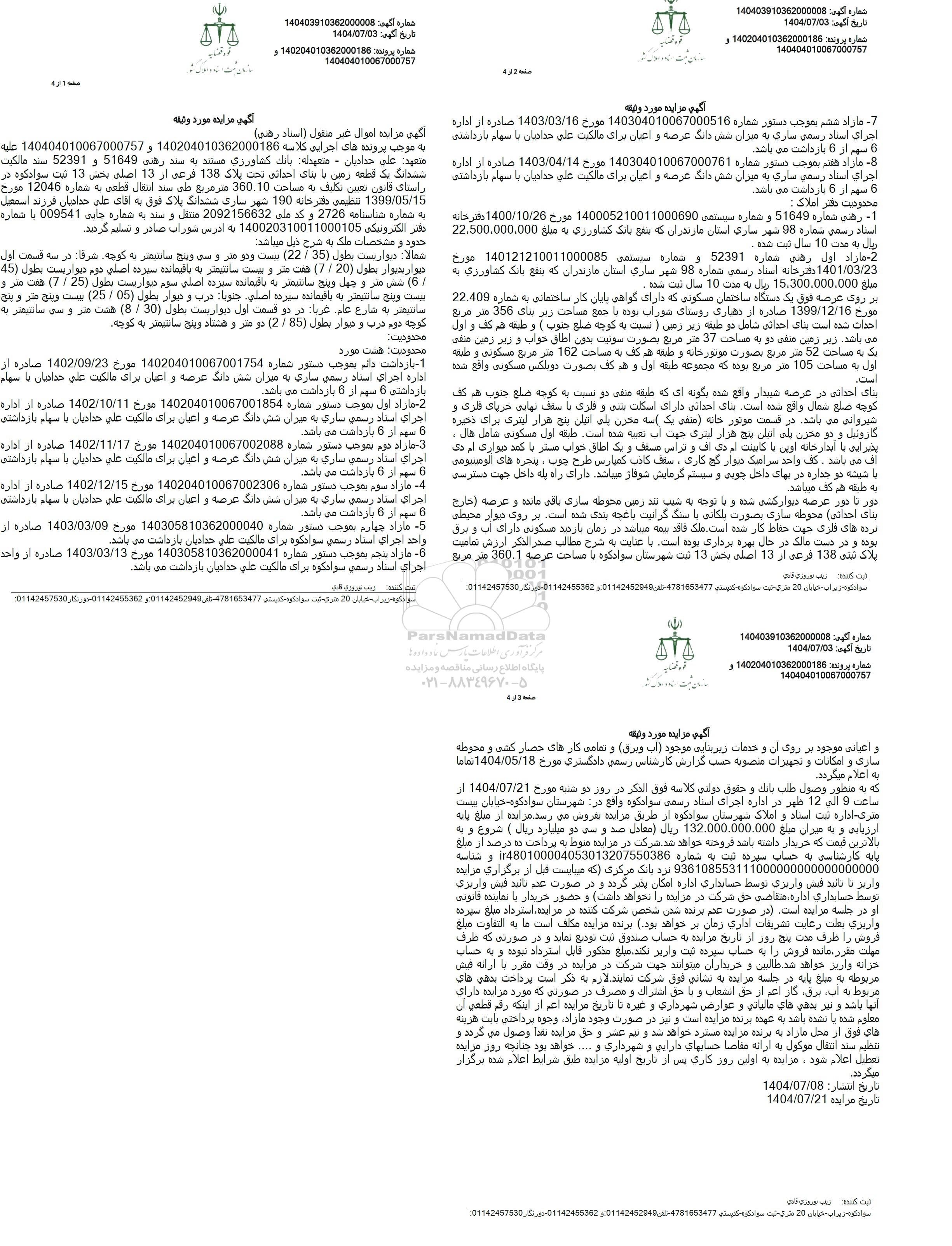 مزایده فروش ملک به مساحت 360.10 مترمربع تحت پلاک 138 فرعی از 13 اصلی بخش 13 ثبت سوادکوه