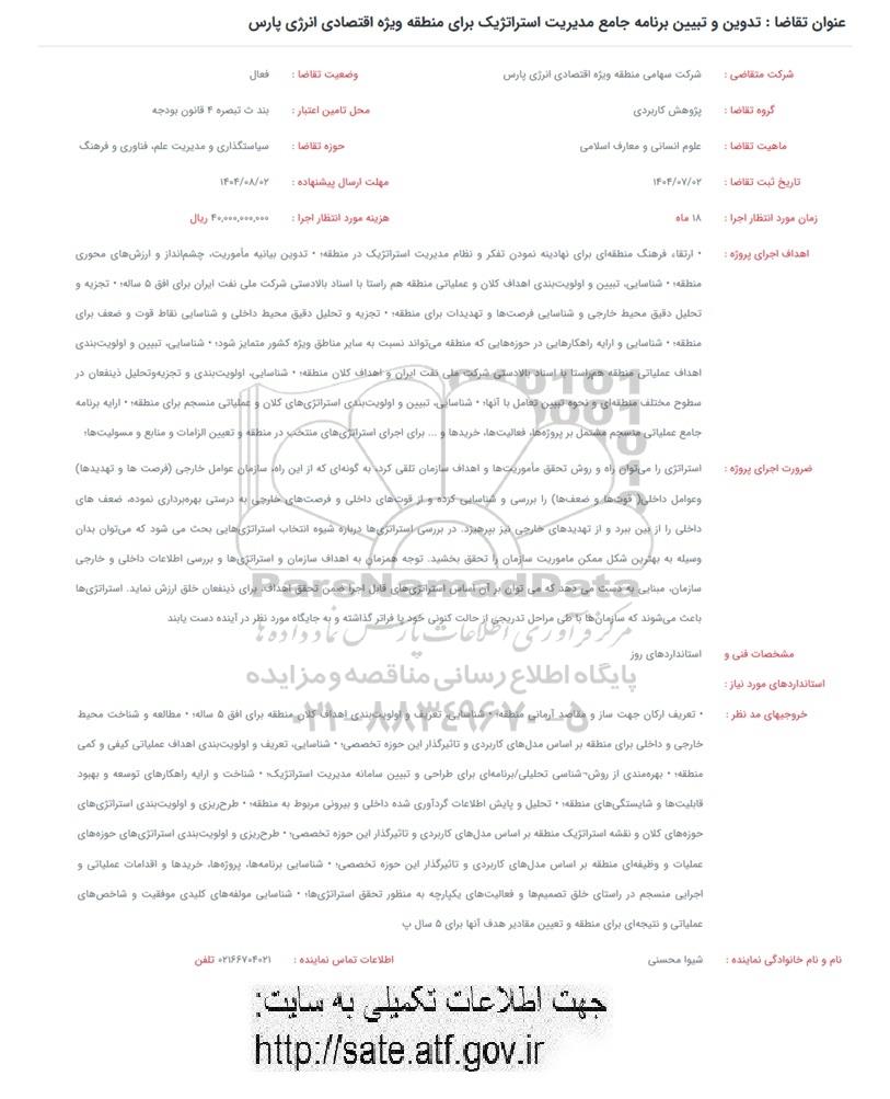 جهت اطلاعات تکمیلی به سایت http://sate.atf.gov.ir