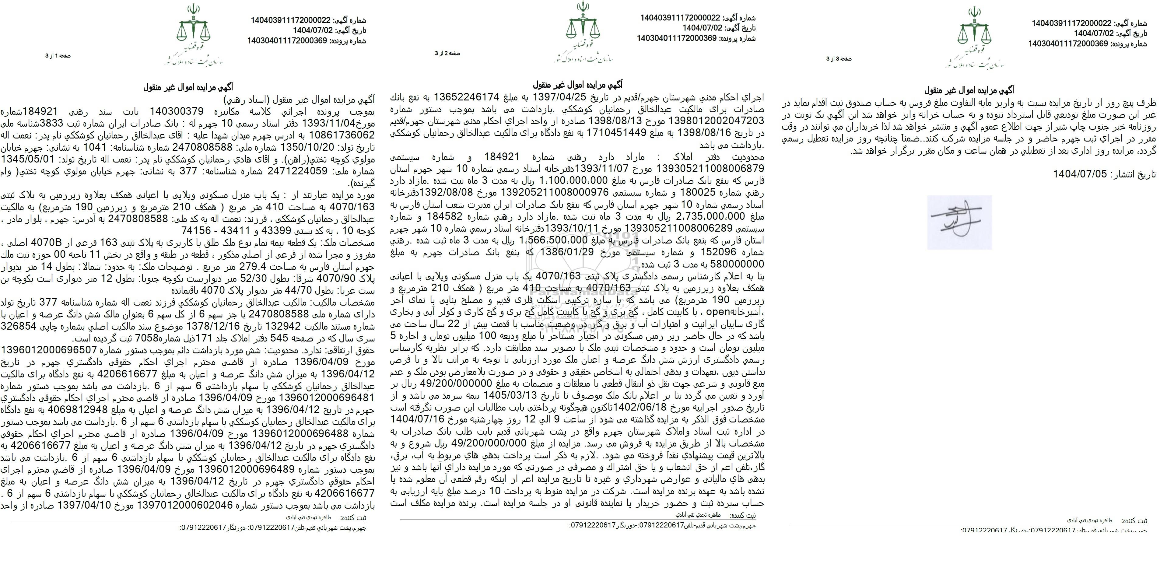 آگهی مزایده اموال غیر منقول (استاد رهی)