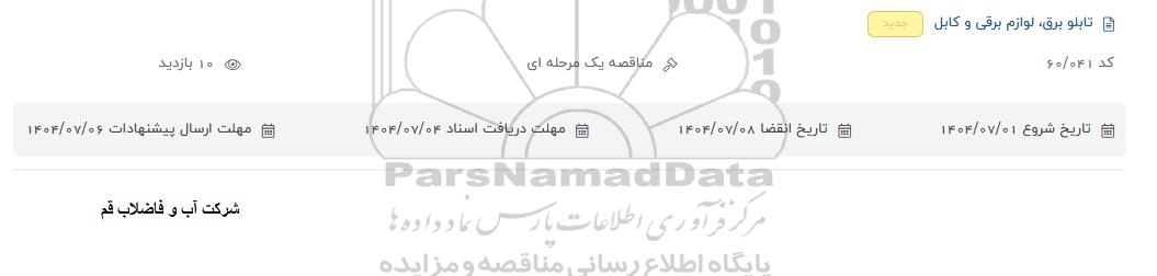 مناقصه تابلو برق ، لوازم برقی و کابل از کلیه افراد متخصص و شرکتها واجد شرایط دعوت به عمل میآید در مناقصه با کد خبرگزاری پارس نماد: 9599585 شرکت نمایند.