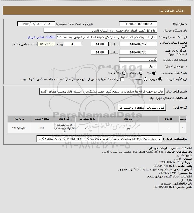 نام سازمان خریدار: اداره کل کمیته امداد امام خمینی ره استان فارس