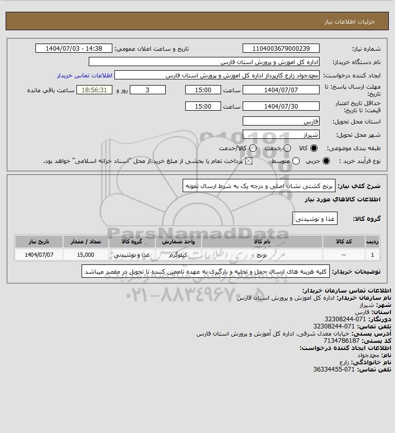 نام سازمان خریدار: اداره کل اموزش و پرورش استان فارس