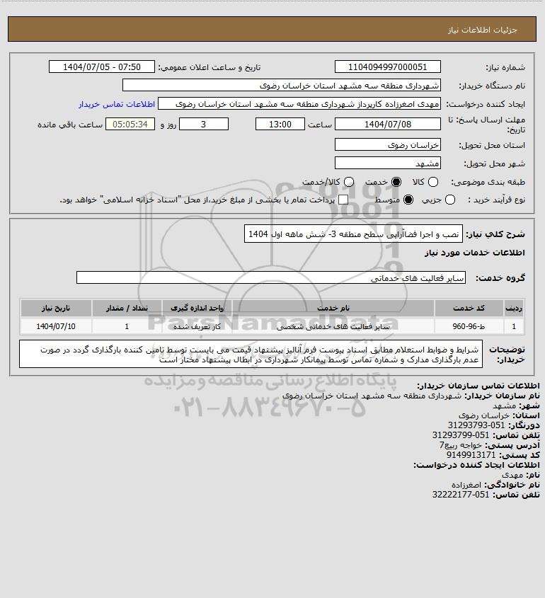شرح کلی نیاز: نصب و اجرا فضاآرایی سطح منطقه 3- شش ماهه اول 1404