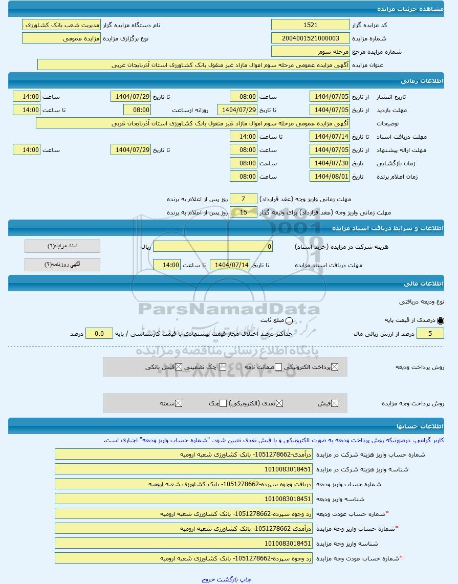 | شماره حساب عودت وجه مزایده | 1010083018451 |