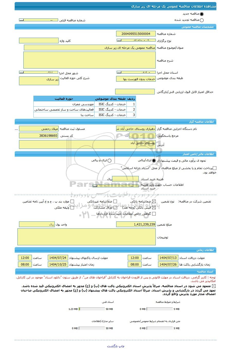نام دستگاه اجرایی مناقصه گزاردهیاری روستای حاجی آباد شهرستان اراکمسئول ثبت مناقصهمیلاد رحمتی