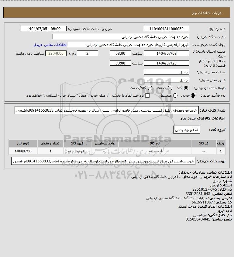 نام دستگاه خریدار:حوزه معاونت اجرایی دانشگاه محقق اردبیلی