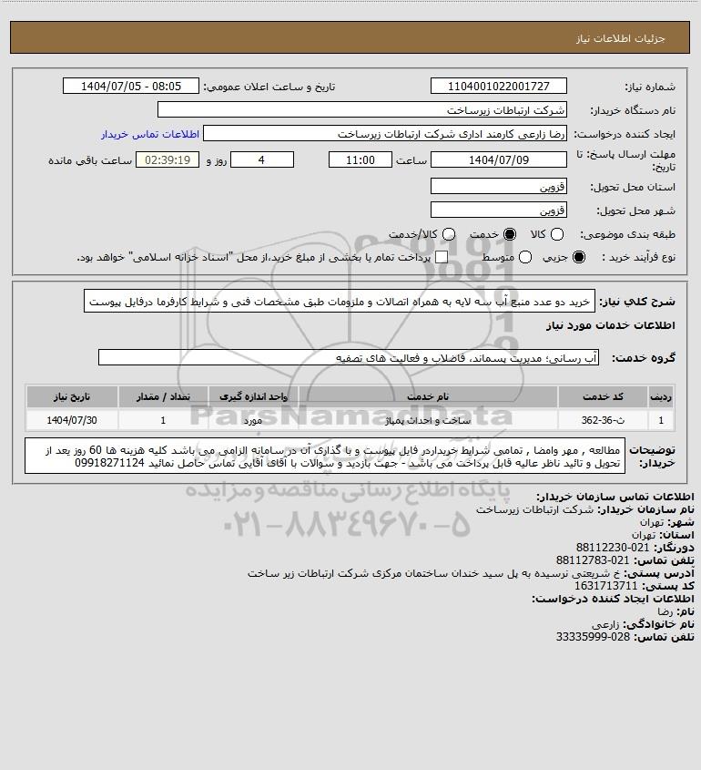 نام دستگاه خریدار:شرکت ارتباطات زیرساخت