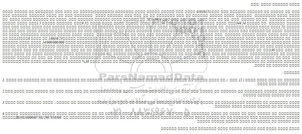 تمام آگهی ها طبق نمونه تصویر آگهی صرفا جهت اطلاع رسانی می باشد در خصوص استفاده از این آگهی هر گونه مسئولیت پرداخت به آگهی دهنده و بررسی و احراز هویت به عهده شرکت کنندگان می باشد و پایگاه خبری پارس نماد هیچگونه منفعت و مسئولیتی بابت تعهد این آگهی ندارد.