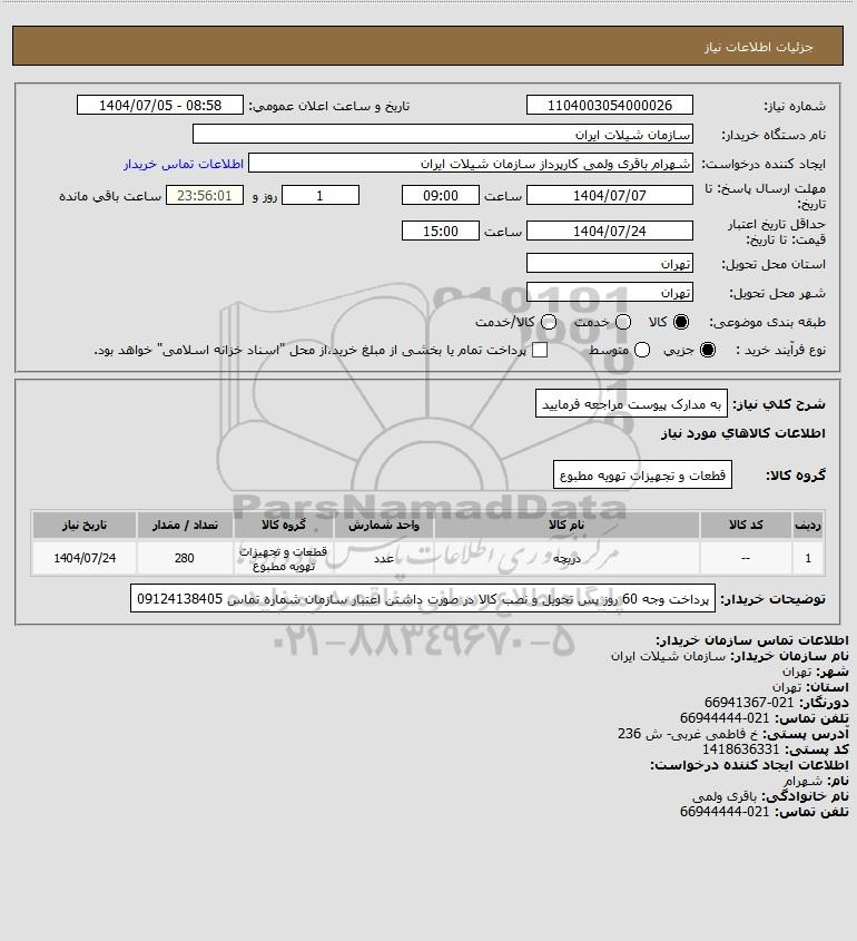 شرح کلی نیاز: به مدارک پیوست مراجعه فرمایید