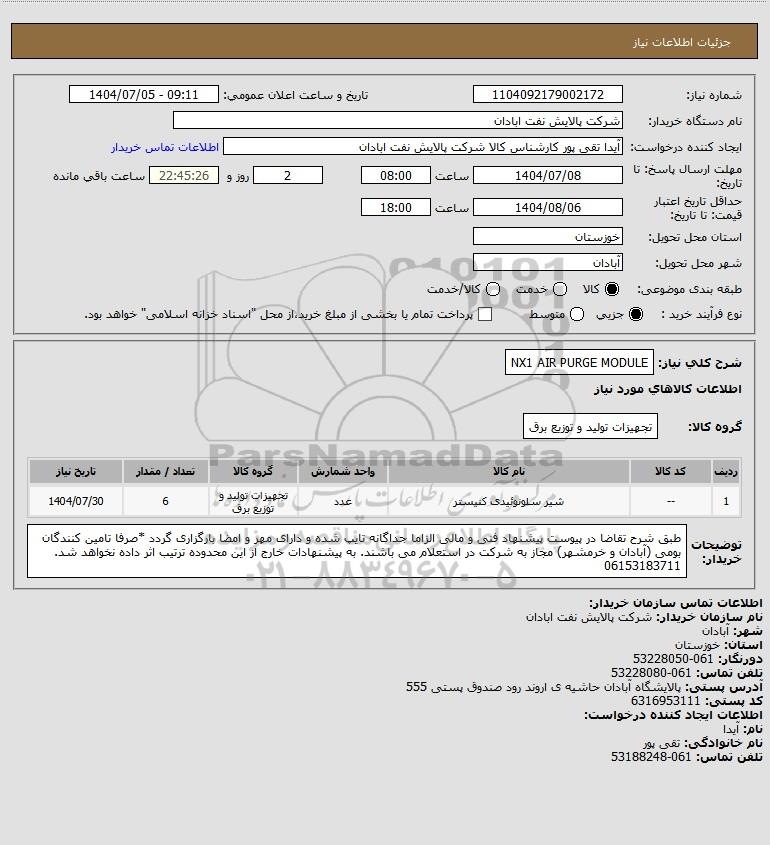 استعلام NX1 AIR PURGE MODULE, استعلام NX1 AIR PURGE MODULE