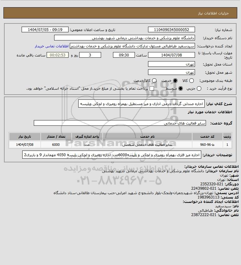 استعلام اجاره صندلی گردان چرمی اداری و میز مستطیل بهمراه رومیزی و لچکی وپلیسه, استعلام اجاره صندلی گردان چرمی اداری و میز مستطیل بهمراه رومیزی و لچکی وپلیسه