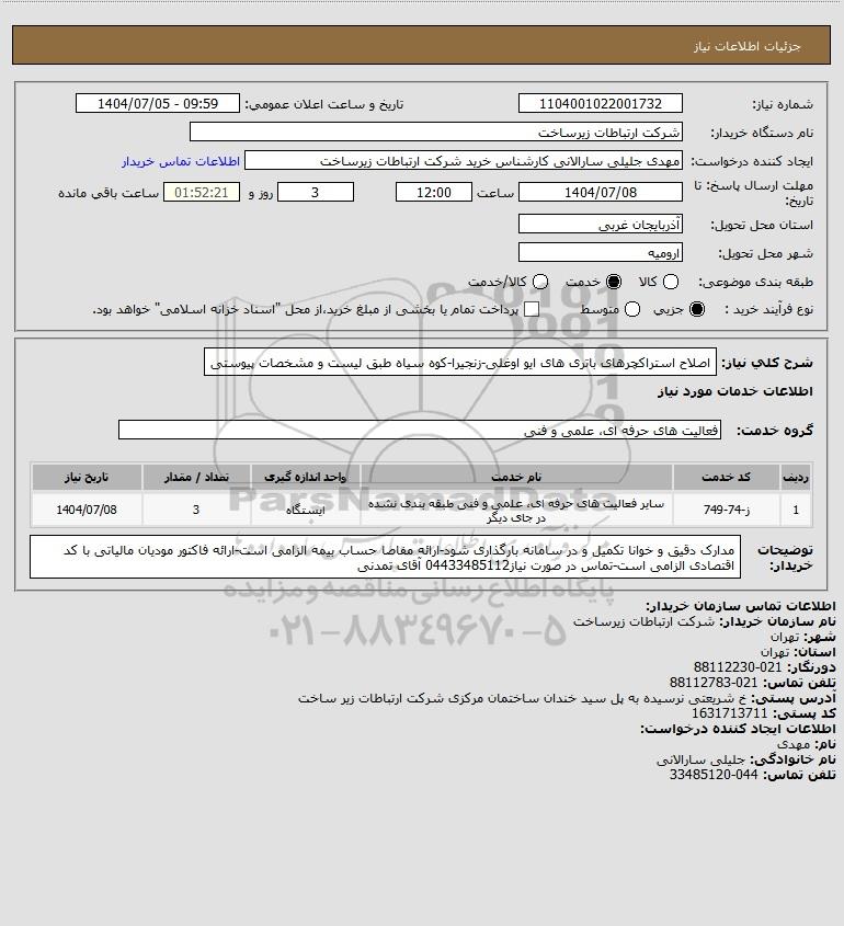 نام دستگاه خریدار:شرکت ارتباطات زیرساخت