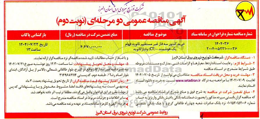 1. دستگاه مناقصه گزار : شرکت توزیع نیروی برق استان البرز