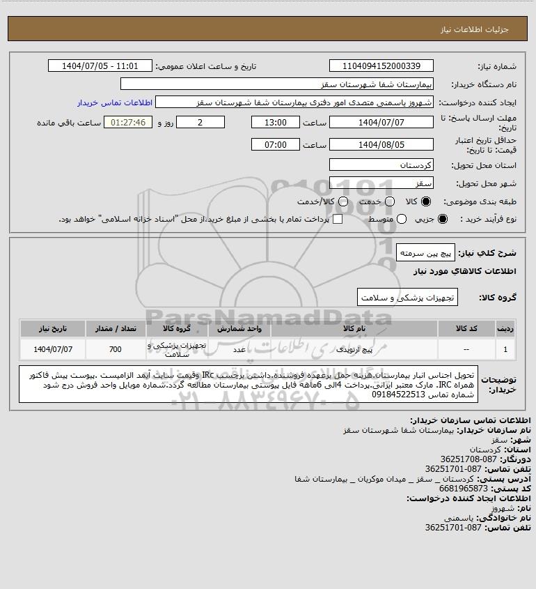 نام دستگاه خریدار:بیمارستان شفا شهرستان سقز