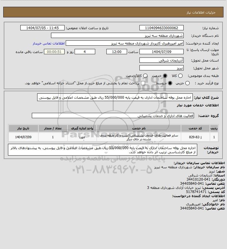 نام دستگاه خریدار:شهرداری منطقه سه تبریز