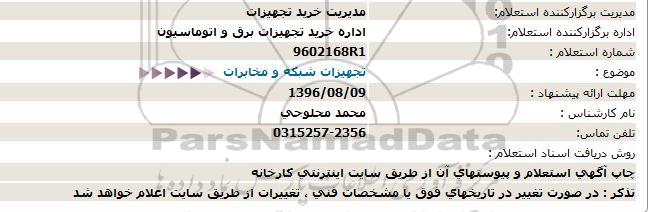 اداره برگزارکننده استعلام: اداره خرید تجهیزات برق و اتوماسیون