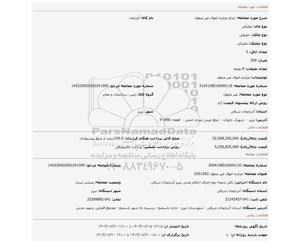 9 مزایده دستور فروش ملک مشاعی 9810687 1404/08/15 new not special not payed آذربایجان شرقی
