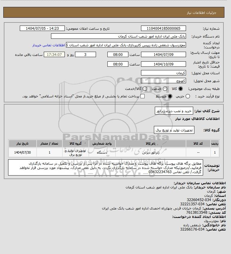 شرح کلی نیاز: خرید و نصب دیژل ژنراتور
