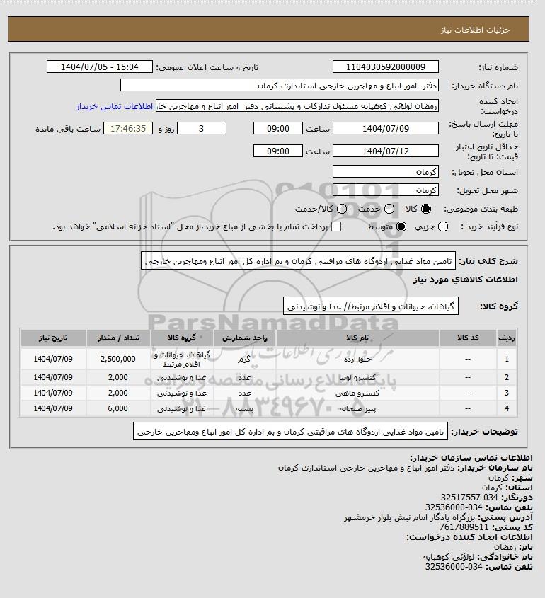نام دستگاه خریدار:دفتر امور اتباع و مهاجرین خارجی استانداری کرمان