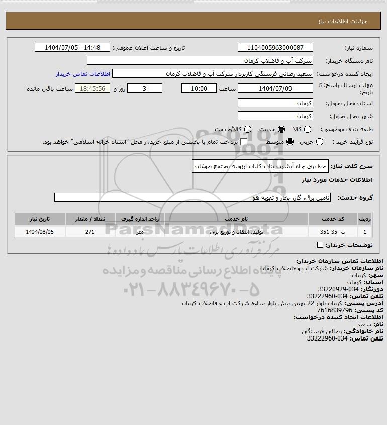 نام دستگاه خریدار:شرکت آب و فاضلاب کرمان