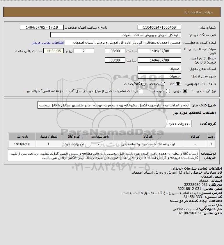 نام دستگاه خریدار:اداره کل اموزش و پرورش استان اصفهان