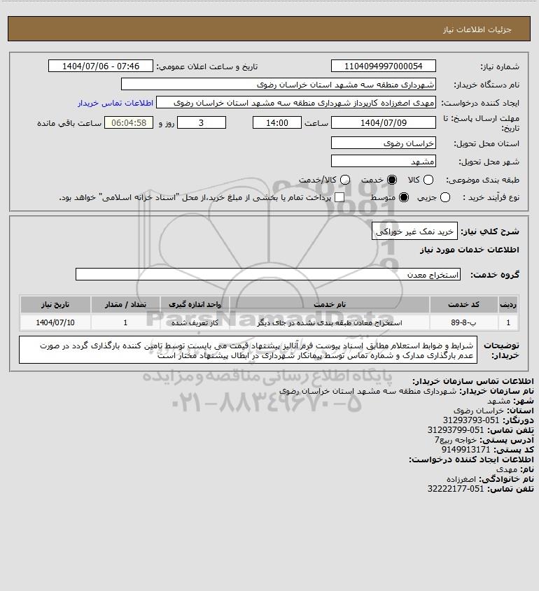 استعلام خرید نمک غیر خوراکی, استعلام خرید نمک غیر خوراکی