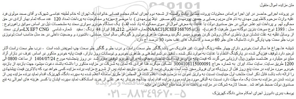 مزایده خودرو سواری  سمند lx ef7 cng  , مزایده خودرو سواری  سمند lx ef7 cng