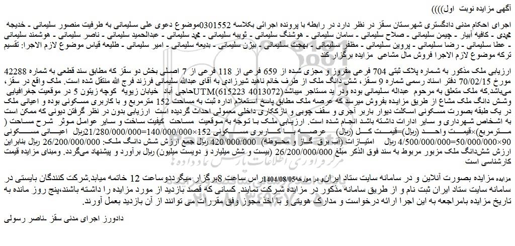 مزایده ملک به شماره پلاک ثبتی 704 فرعی مفروز و مجزی شده از 659 فرعی از 118 فرعی از 7 اصلی, مزایده ملک به شماره پلاک ثبتی 704 فرعی مفروز و مجزی شده از 659 فرعی از 118 فرعی از 7 اصلی