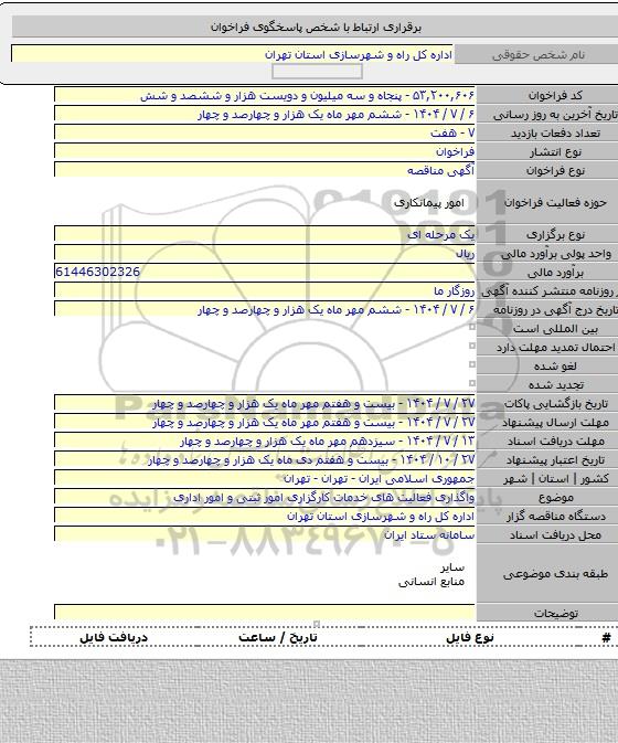 این مناقصه در تاریخ 1404/07/06 شروع و مهلت آن تا تاریخ 1404/07/13 میباشد.