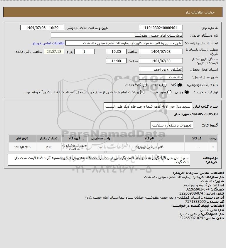 | 1 | -- | کاتتر جراحی اورولوژی | عدد | تجهیزات پزشکی و سلامت | 200 | 1404/07/15 |