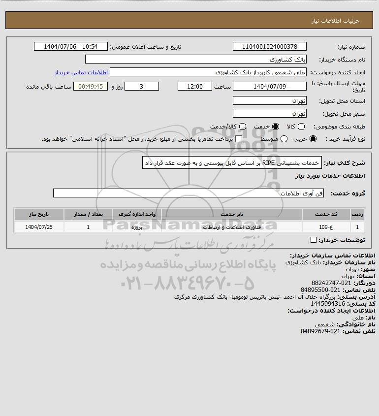 شرح کلی نیاز: خدمات پشتیبانی RIPE بر اساس فایل پیوستی و به صورت عقد قرار داد