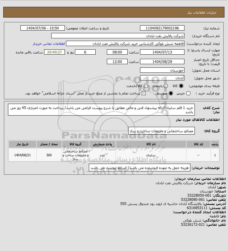 نام دستگاه خریدار:شرکت پالایش نفت ابادان