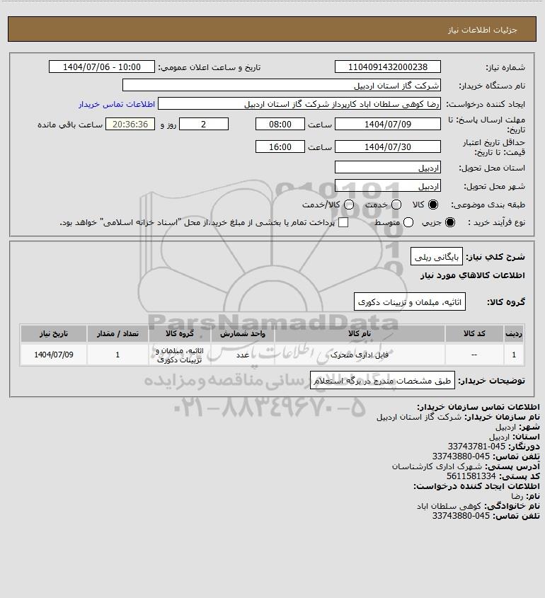 نام سازمان خریدار: شرکت گاز استان اردبیل