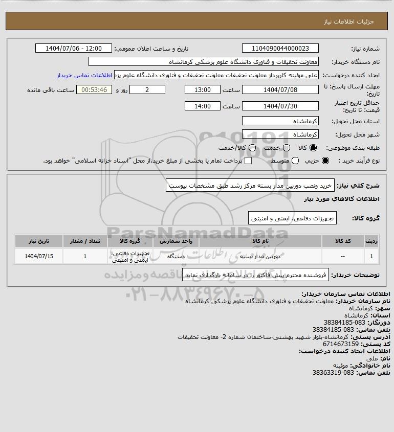 نام دستگاه خریدار:معاونت تحقیقات و فناوری دانشگاه علوم پزشکی کرمانشاه