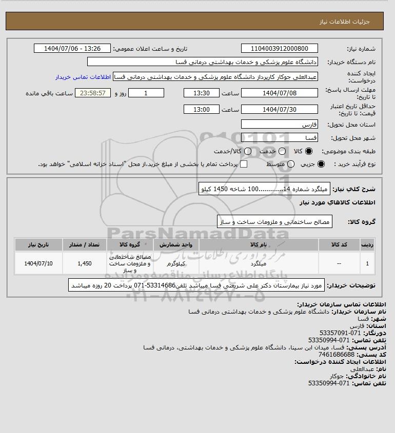 شرح کلی نیاز: میلگرد شماره 14............100 شاخه