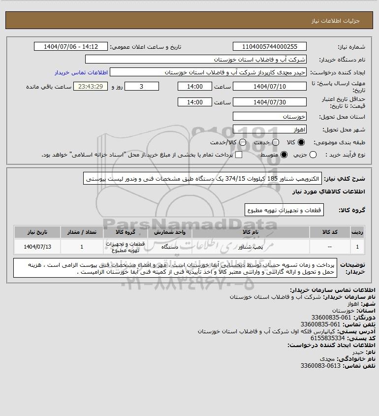 نام دستگاه خریدار:شرکت آب و فاضلاب استان خوزستان