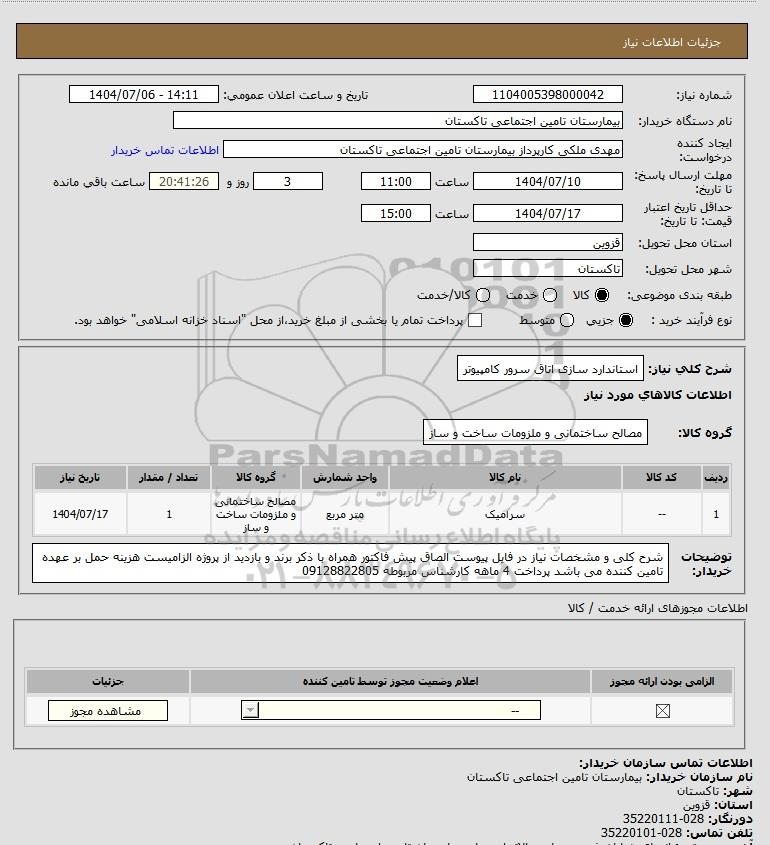نام دستگاه خریدار:بیمارستان تامین اجتماعی تاکستان