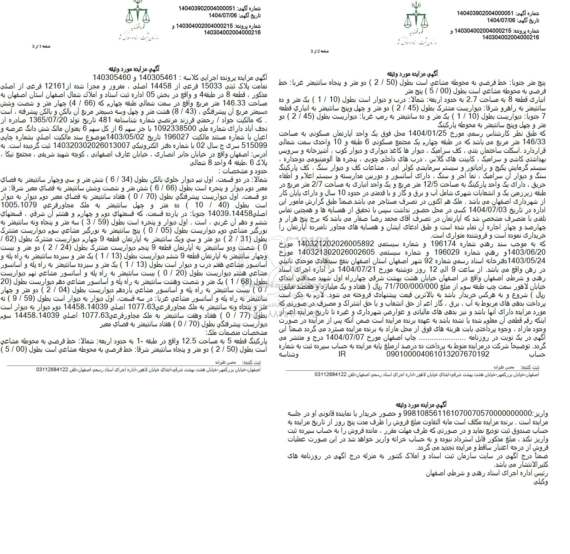 آگهی مزایده پرونده اجرایی کلاسه : 140305461 و 140305460