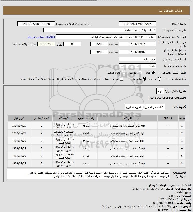 نام سازمان خریدار: شرکت پالایش نفت ابادان