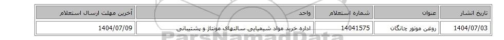 تاریخ انشارعنوانشماره استعلامواحدآخرین مهلت ارسال استعلام