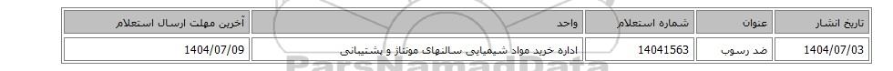 1404/07/03ضد رسوب14041563اداره خرید مواد شیمیایی سالنهای مونتاژ و پشتیبانی1404/07/09
