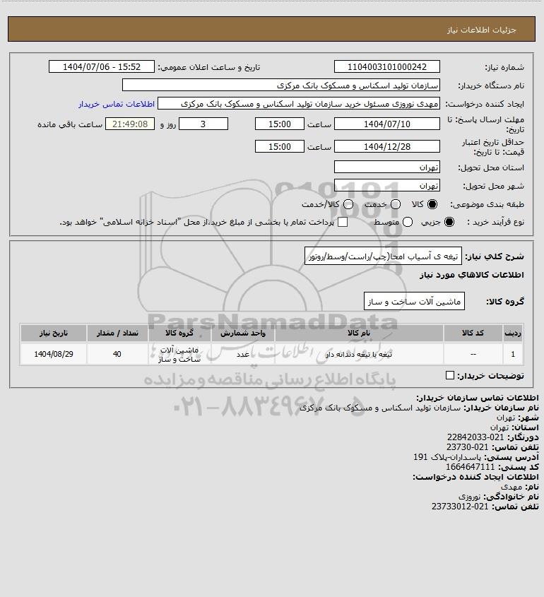 1 | -- | تیغه یا تیغه دندانه دار | عدد | ماشین آلات ساخت و ساز | 40 | 1404/08/29 |