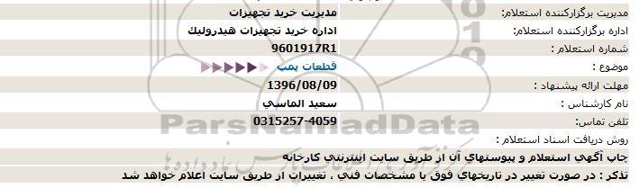 اداره برگزارکننده استعلام: اداره خرید تجهیزات هیدرولیک