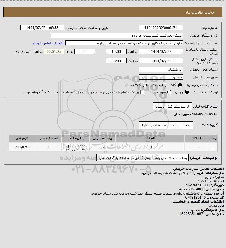 نام دستگاه خریدار:شبکه بهداشت شهرستان جوانرود
