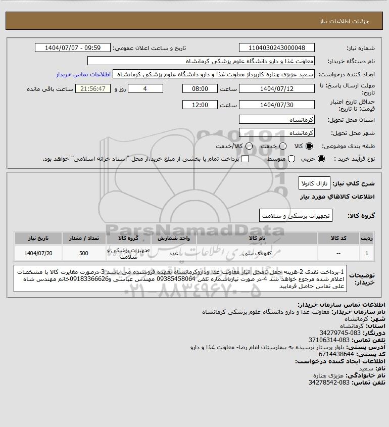 نام دستگاه خریدار:معاونت غذا و دارو دانشگاه علوم پزشکی کرمانشاه
