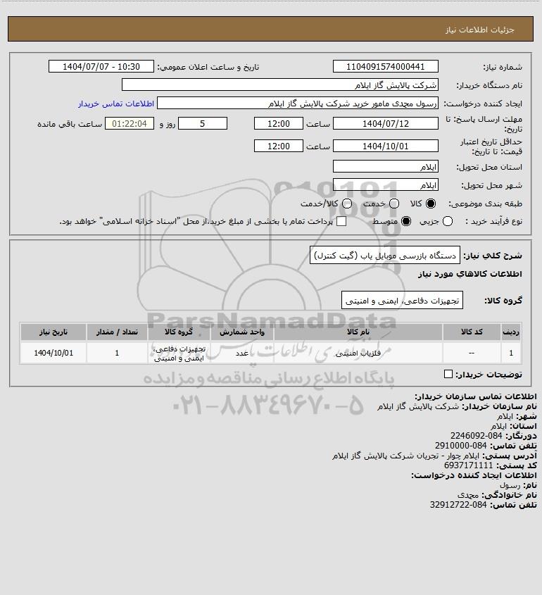 شرح کلی نیاز: دستگاه بازرسی موبایل یاب (گیت کنترل)
